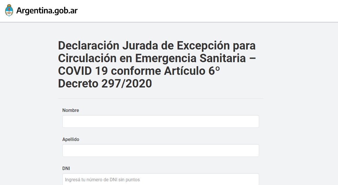 Declaración Jurada de Excepción para Circulación en Emergencia Sanitaria